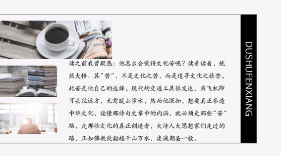 本次活动面向我院全体学生展开,环境学子踊跃报名。作品形式分别为视频拍摄讲解,ppt录屏讲解,word文档编写。同学们分享的书多种多样,包括经典著作、科幻小说及历史名著等等。同学们不仅介绍了读书的主要内容,还分享了各自的读书收获,心得体会。其中能动181曾翔推荐的书《习近平的七年知青岁月》,看到讲述者通过自己的亲身经历,用最真实的细节讲述了习近平总书记在知青岁月里,从没有放弃读书和思考的故事,看到北京知青陶海粟讲到习近平一直秉持着志当存高远,但要从身边的小事做起的原则,让同学们深受感动。水183赵莹莹推荐的《文化苦旅》讲述了对文化的领悟是需要亲身经历的,曾经所谓的旅行是多么的无知,只有一个人的苦旅,让孤寂与文化作伴才是真正的读懂这历史文化。部分同学表示,在书中不断提升自己,读书已经成为了他们的一种习惯。分享的作品已经陆续在微信平台线上推送。