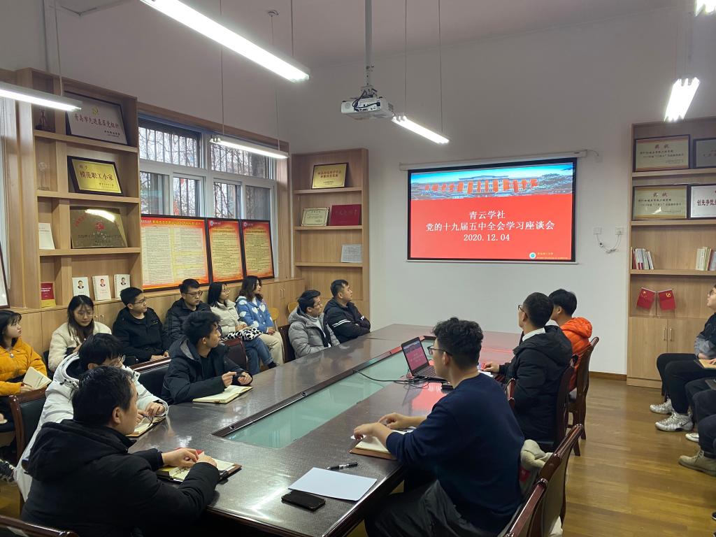 12月4日,纽约国际上网导航青云学社举行学习党的十九届五中全会座谈会,学院党总支副书记邵长飞出席座谈会,辅导员王登榜主持座谈会,学院思政类社团青云学社相关同学参加会议。