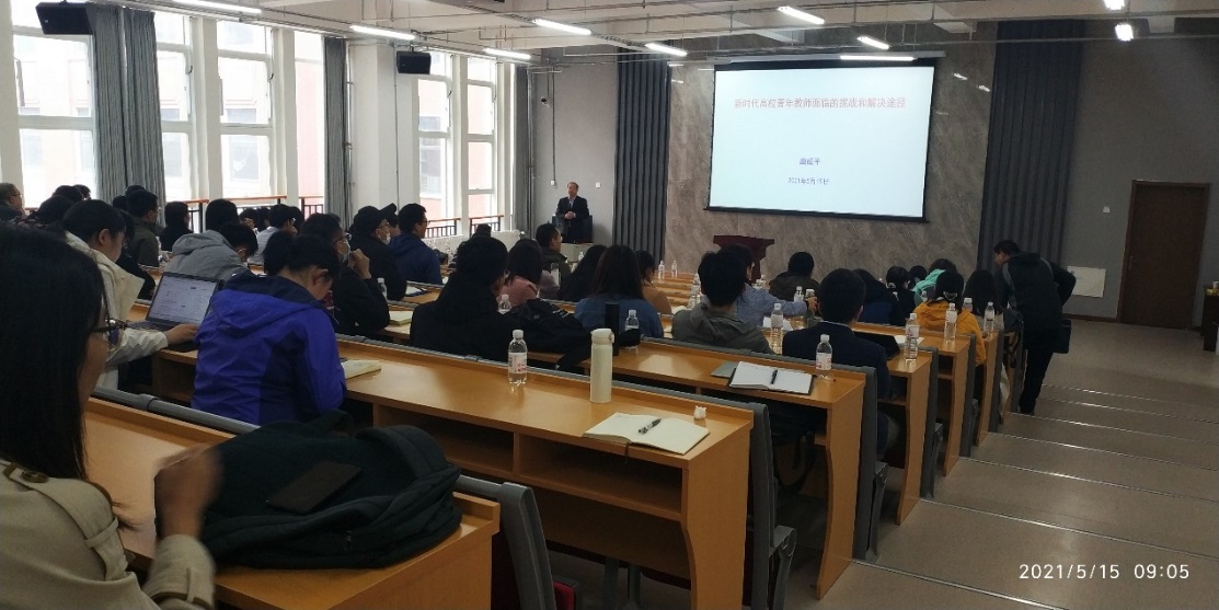 土木工程学院党委书记曲成平教授作了主题为《新时代高校青年教师面临的挑战和解决途径》的报告。曲成平教授从中国高等教育人才培养模式的重大变革、破五唯带来的困惑、当代大学生的特点以及青年教师面临家庭生活、经济状况等维度分析了新时代高校青年教师面临的挑战,从学校、学院、教师个人的角度给出战胜这些挑战的建议,最后建议青年教师注重心理健康状况,提升自己的心理抗压能力。