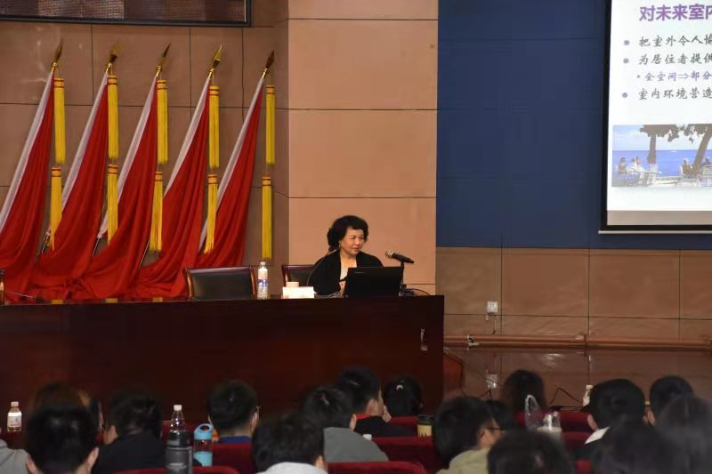 报告会上,朱颖心教授主要介绍了动态热环境参数、心理因素、热经历对人热舒适的影响。提出自然通风条件下,人们可接受的温度上限要高于常规空调下的值,研究表明亲近自然是人的本性;长时间逗留在恒温环境下会导致人体热应激能力退化,并指出适应性热舒适、动态热舒适是热环境营造未来发展方向。最后,朱老师为在场师生解答了关于“碳达峰、碳中和”的相关疑惑。报告内容精彩纷呈,开阔了师生学术视野,促进深入研究思考,指引了努力方向。