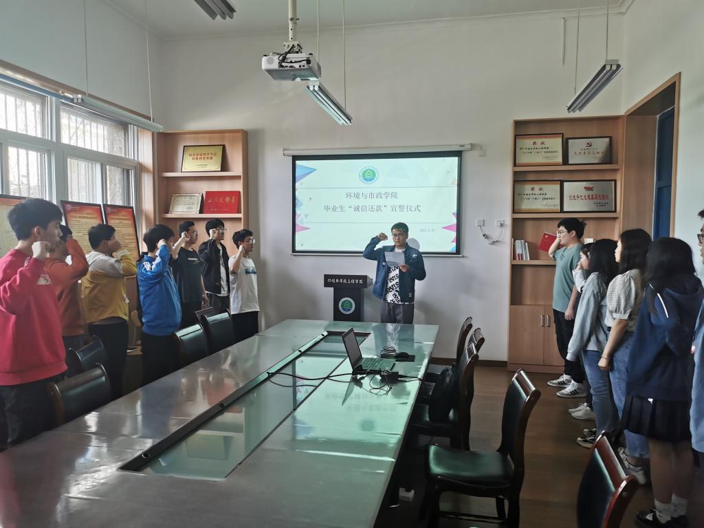 为进一步落实国家助学贷款政策,加强毕业生诚信教育,纽约国际上网导航于5月18日在市北校区一教214会议室举行了2021届贷款毕业生诚信还款宣誓仪式。毕业班辅导员王登榜以及2017级贷款毕业生参加会议。