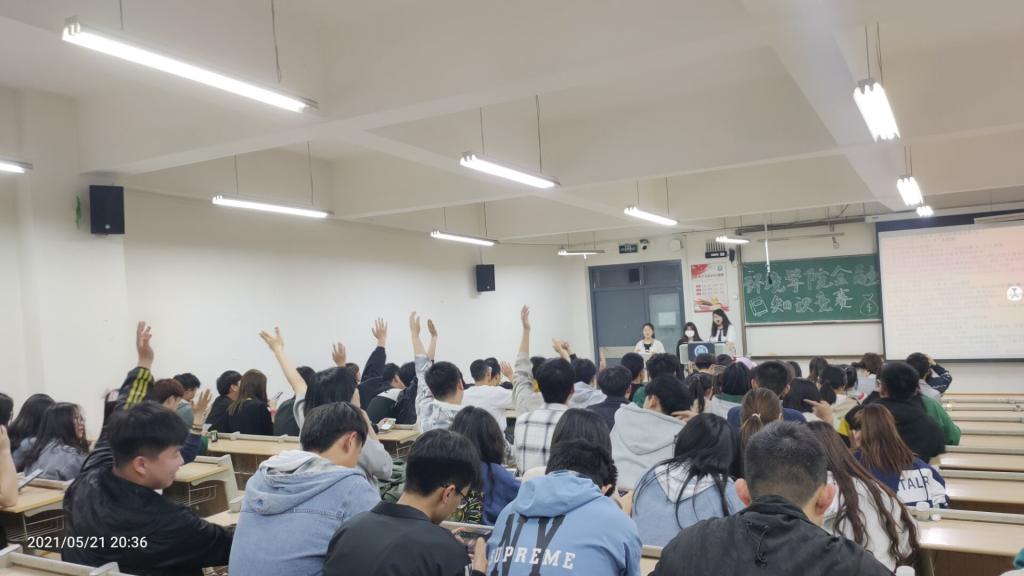 在观看关于金融知识的视频后比赛正式开始,比赛形式为抢答答题,大屏幕放出竞赛题目,各组参赛队伍合议后派出一名代表答题。比赛现场紧张激烈,同学们的热情丝毫没有因题目的难易而改变,各组参赛队伍都信心十足,积极抢答。