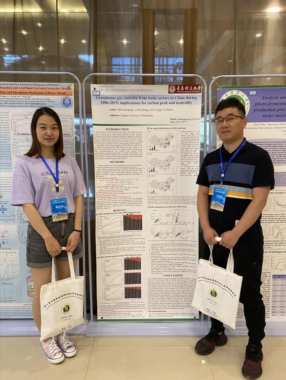 会议邀请了世界各地在有机废弃物制备生物能源、燃料和化学品/生物化学品、矿业固体废物的生物处理与资源回收、固体废弃物好氧堆肥及污染控制、有机废弃物制备生物炭及其应用、城市固体废物的资源化处理和纳米技术及其在固体废物处理中的应用等方面有突出贡献的科学家、工程师和行业专家进行专题报告及交流。我校代表李卫华副教授与硕士生谷凯、于倩雯,卞荣星副教授与硕士生陈纪宏分别做了题为“MSWI Fly Ash Exposed to Carbonation and Acid Rain Corrosion Scenarios: Release Behavior, Environmental Risk, and Dissolution Mechanism of Heavy Metals”、“Greenhouse gas emission from waste sectors in China during 2006-2019: implications for carbon peak and neutrality”的Poster展示。