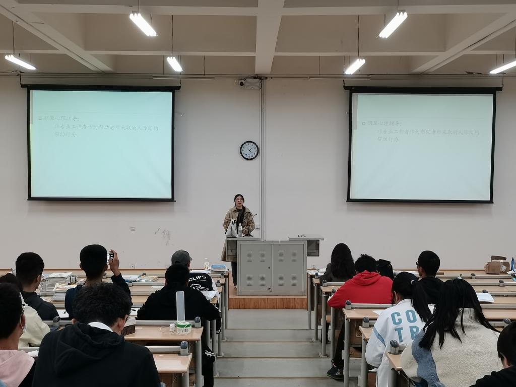 在培训会中,首先胡启旭老师解释了朋辈心理辅导的概念与意义,着重强调了其在心理教育方面的重要意义,指出朋辈心理辅导是保障当代大学生心理健康的重要举措。胡启旭老师还向同学们介绍了心理状态的划分,告诉同学们“灰色地带”存在的普遍性,提醒同学们不需要为此过于焦虑,但也要重视自己及周围同学的心理状况,防止其滑入“黑色”那端。最后,为同学们总结了“倾听=关注+聆听+反馈”与“共情=察觉+接纳+传递”两个公式,并希望大家可以在发现周遭同学疑似出现心理情绪障碍时充分利用这两个公式来帮助同学缓解甚至解决问题,同时希望身为朋辈志愿者的各位同学积极发现并帮助身边出现心理问题的同学,积极寻求辅导员、班主任以及学校心理健康教育中心老师的帮助。
