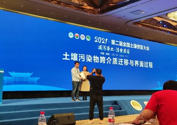 我校王华伟副教授在土壤污染物跨介质迁移与界面过程分会场作《微生物诱导铁锰氧化物对土壤砷的稳定化效果研究》主题报告,研究成果为砷污染土壤生物修复提供新的科研方向与技术支持。此外,学院环境科学与工程专业研究生徐榕作《沼渣协同硫酸亚铁修复Cr(Ⅵ)污染土壤》的墙报展示,研究成果为我国铬污染土壤的修复及工程应用提供技术支撑。国内同行对我校在污染土壤修复方面取得的研究成果予以高度认可,推动了土壤修复行业的高质量发展。
