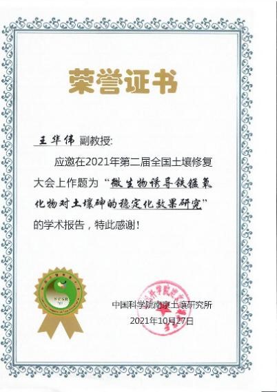 2021年10月25-27日,第二届全国土壤修复大会在南京国际青年会议酒店顺利召开。会议由中国科学院南京土壤研究所、中国土壤学会、农业农村部农业生态与资源保护总站主办,参与此次大会的有全国494家单位,人数约1300人。我校纽约国际上网导航固体废物污染控制与场地修复团队王华伟副教授等师生5人参加了本次学术交流会议并作主题报告。