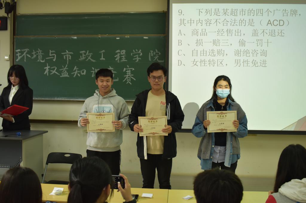 线上初赛于2021年11月17日举行,吸引了200位同学的参与。同学们充分准备,各显其能,取得了耀眼的成绩。经过激烈角逐,最终有30位同学脱颖而出,进入决赛。线下决赛进行于2021年11月30日下午2点在B209教室举行,活动过程中,参赛同学热情高涨,反应迅速,回答准确,神采奕奕,姿态昂扬,充分展现了自身丰富的知识储备与环境学子的风采。最终,经过“龙争虎斗”、“情景再现”、“决胜时刻”三个紧张刺激的环节,来自环科211班的冷雨桐、罗菊梅、朱咏琪荣获一等奖。