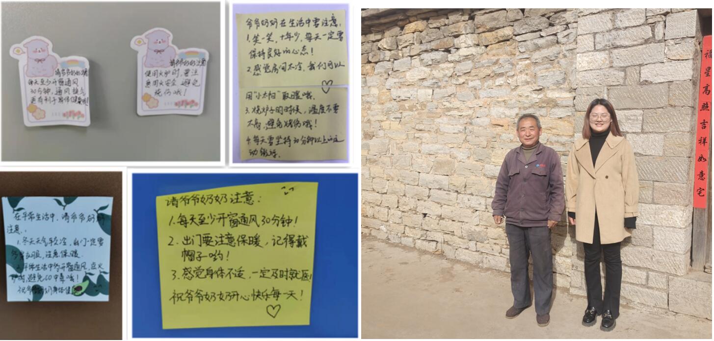 冬季室内外温差为中老年人心脑血管疾病的诱因之一,团队发现多数农村老年人文化水平不高,缺乏用暖健康相关常识。团队积极用通俗易懂地语言向农村老年人科普安全用暖、健康用暖相关知识。制作“健康生活”小贴士,提醒老年人科学用暖、健康用暖、预防疾病发生。同时倡导老人及家属尝试使用电辅助供暖和天然气壁挂炉等安全便捷、经济高效的新型采暖方式。