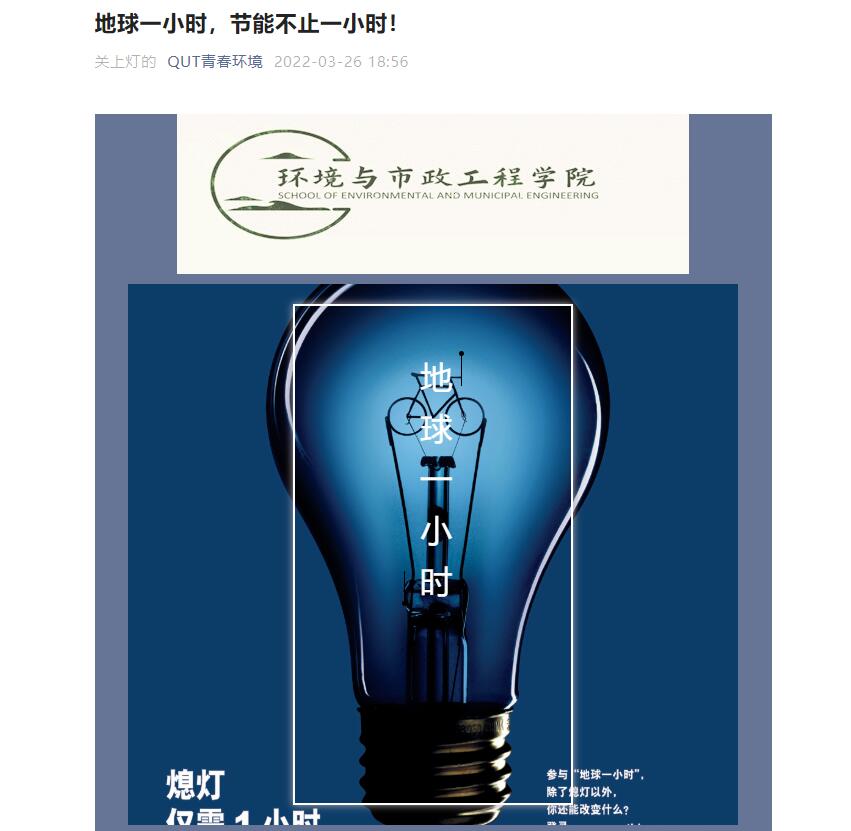 “地球一小时”(Earth Hour)活动是世界自然基金会于2007年发起的一个全球活动,号召个人、社区、企业和政府在每年3月最后一个星期六的20时30分至21时30分关闭不必要的电源,以表明对保护地球的支持。2022年“地球一小时”的主题为“行动,共创未来”,3月26日晚,纽约国际上网导航团委积极响应,面向全校师生发出“地球一小时,节能不止一小时”的号召,倡议全体师生于20:30-21:30关闭不必要的电源,节能一小时,一起行动,共创未来。