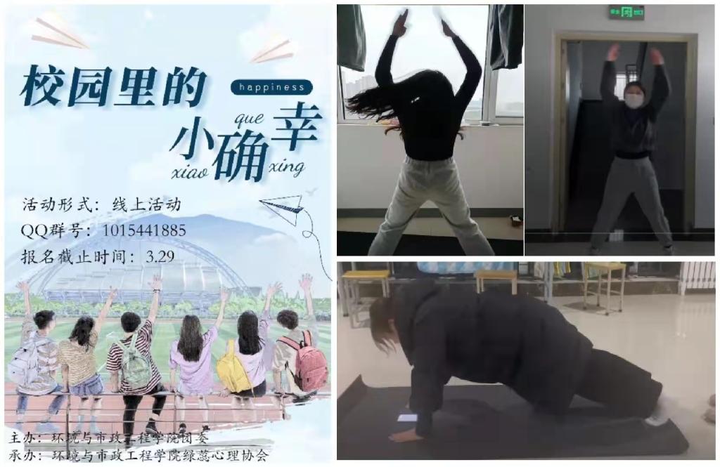 打出“组合拳”,筑牢“心”防线。学院深度关注学生心理状态,当前封校背景下,学院通过线上线下相结合的方式,积极开展“校园里的小确幸”摄影作品征集、“线上体能选拔赛”、朋辈志愿者团体辅导、主题团课等活动,引导学生善于发现身边的美好,培养积极阳光心态,增强心理免疫力。