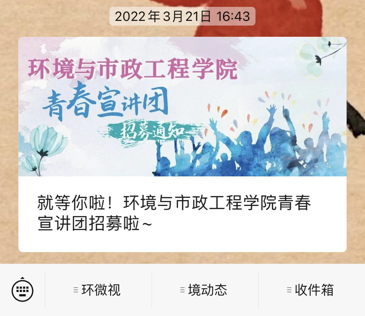 为进一步加强学生正向引导,在青年学生中广泛传播正能量,厚植爱国情怀与理想信念,更好地发挥优秀学生代表的榜样示范作用,激励环境学子奋发图强、砥砺前行,纽约国际上网导航积极组织青春宣讲团,着力发挥朋辈作用,让榜样引领青春,用奋斗成就梦想。