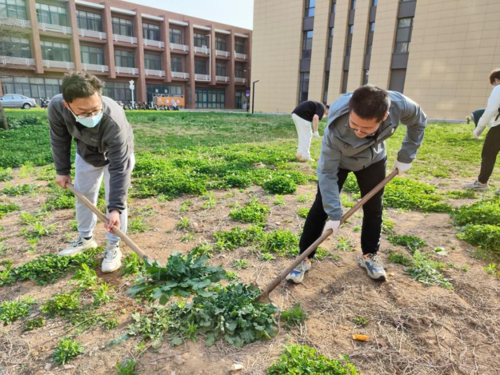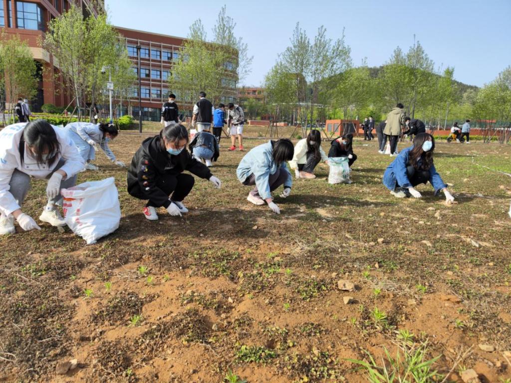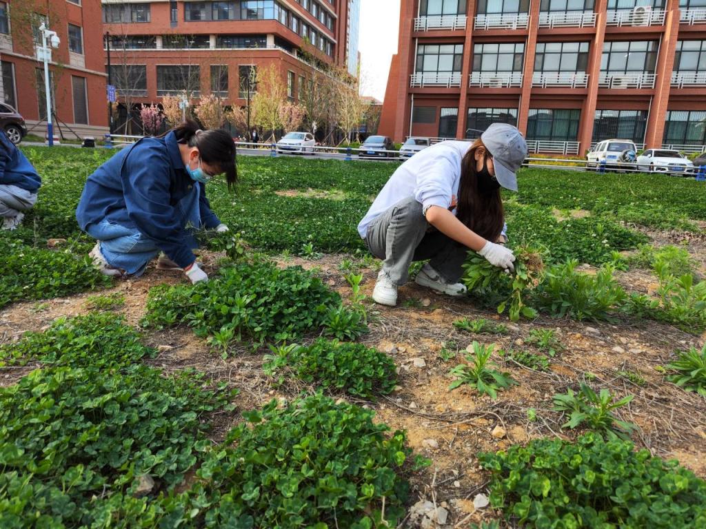 “除杂草时应采用蹲姿作业,不要坐地和弯腰寻杂草,运用辅助工具将草同草根一起铲除,不能仅将杂草地上部分去除……”后勤管理处园艺师带领同学们进行除杂劳动,并现场教授除杂草窍门。环境科学专业学生孟迪说:“画工图与除草都需要耐心和细心,才能事半功倍完成作业”。