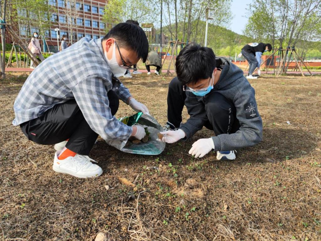 同学们在各组的绿色责任区里分工合作清理石块,有的负责捡拾、有的负责装袋、有的负责运输,经过两个多小时的劳动,草坪的面貌焕然一新。同学们在劳动实践中深刻体会到了劳动的意义,在合作中加深了彼此的友谊。