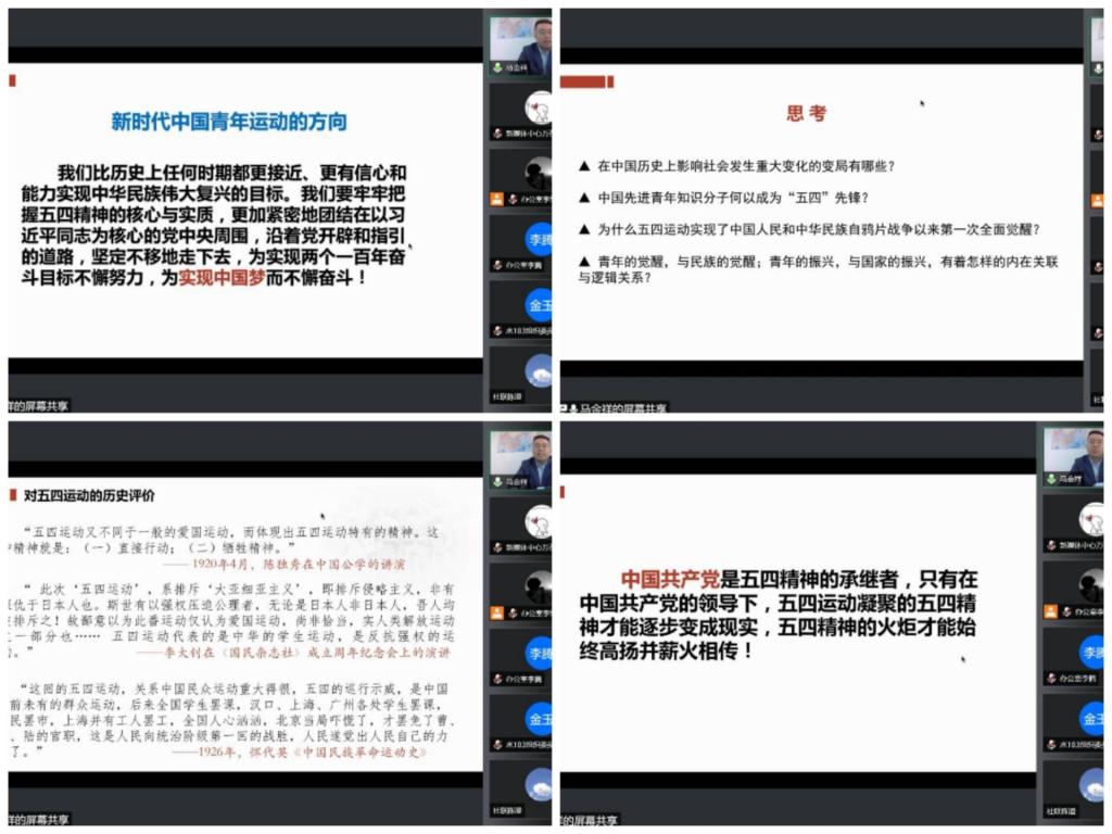 为纪念五四运动103周年,做好青年学生思想引领,纽约国际上网导航邀请共青团中央中国青少年研究中心、中国青少年研究会青运史分会特约研究员马金祥博士做客学院青马课堂,报告主题为“百年五四与青年担当”,学院200余名青年学生线上参加,讲座由学院团委书记花会娟主持。