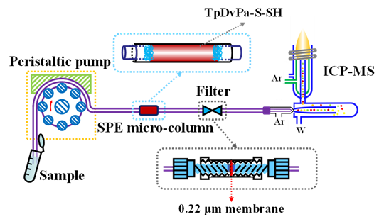 图3. TpDvPa-S-SH在线固相萃取-ICPMS分析痕量Co2+、Ni2+和Cd2+装置示意图