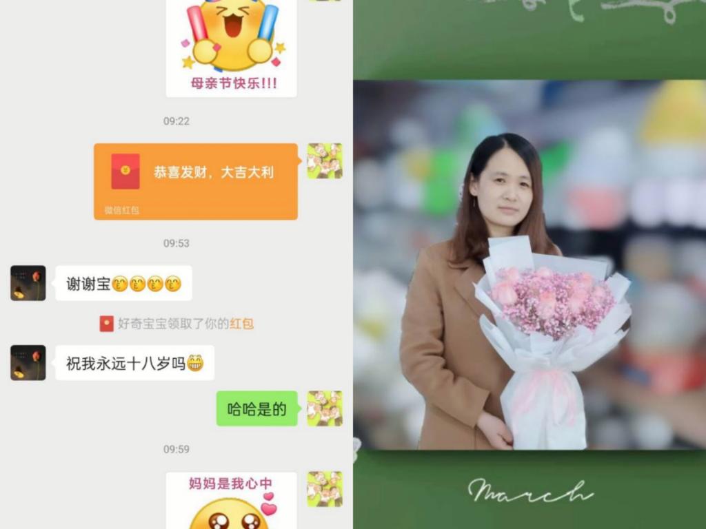 云端送礼,表达爱意。“妈,这是我用我奖学金给您买的蛋糕,您的儿子这次让你骄傲一回!”“妈!快去楼下签收,看我给您买的花束,节日快乐!”母亲节一早,能动211班宗佳慧给母亲买的花束送到了。一份份特殊的礼物,在母亲节这天送到家门。这些礼物也许微不足道,但礼轻情意重,这正是环境学子让母亲感到骄傲的证明!