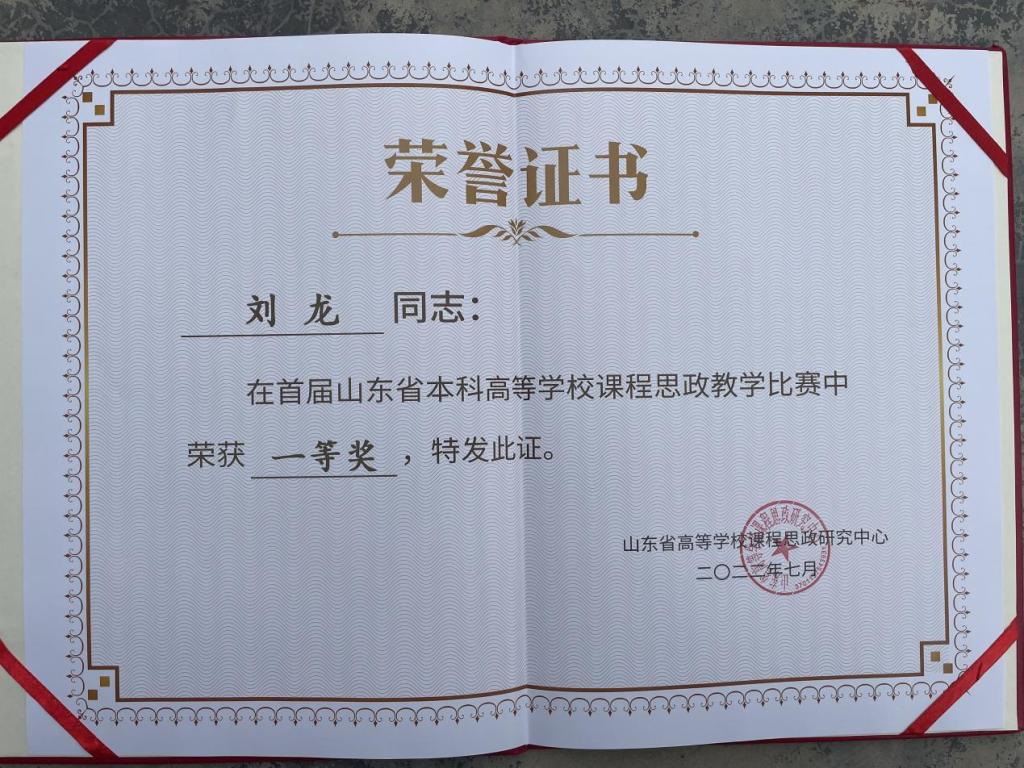 刘龙,男,中共党员,副教授,院长助理。主持山东省线上线下混合式一流课程1门,曾获山东省首届课程思政教学大赛一等奖;山东省第六届高校教师讲课大赛一等奖;获校级第十一届青年教师讲课大赛自然科学组一等奖;校级第二届教学创新大赛副教授组一等奖;校级首届课程思政教学大赛一等奖;获校级优秀教师、校级教师楷模、校级师德标兵提名奖、优秀班主任、先进个人、科技创新优秀指导教师、第二课堂优秀指导教师等荣誉称号。获得山东省本科教学改革与研究面上项目1项;山东省课程思政教学改革研究项目1项;获得山东省第九届教学成果奖2项;获得校级教改课题3项,发表教改论文3篇。