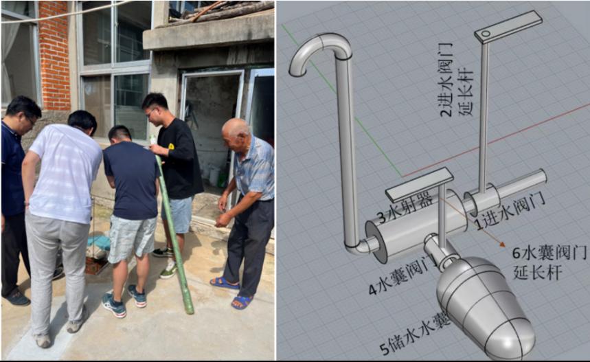 聚“青年才智”,一件研发设备,解“冬季厕所冲水难”。针对村民反馈的冬季取水管道易冻易堵问题,团队因地制宜,着力研发干旱、寒冷地区卫生厕所适用技术和产品。在去年,团队成员李志超研发的“一种供水管道断水泄水防冻设备”装进了荣成市耩上岳家村的10名试用者的家中,解决了村民冬季用厕冲水难的问题,从技术适用性上推进农村“厕所革命”的实施。8月16日团队再次来到试用者邹大爷家中,为邹大爷家进行了水管防冻设备的检查及维护,并为邹大爷家中排水系统防冻方案进行了优化升级。邹大爷表示:以前一到冬天水管就冻住了,我和老伴只能一桶桶的打水来冲厕,自从学生们给我装了这个“高科技”,冬天方便了太多了!