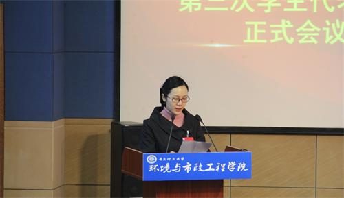 4月23日上午,环境学院第三次学生代表大会在学术报告厅召开。环境学院党总支书记董典同、学生处副处长李忠晓、校团委副书记高洁、环境学院党总支副书记周红燕、团总支书记张恬出席,学生代表188人,以及学院辅导员和各兄弟学院的代表参加。